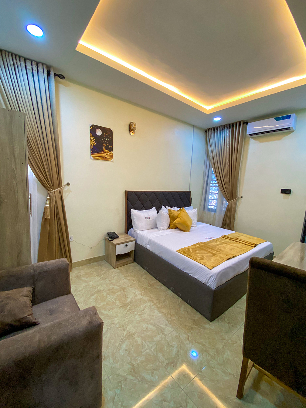 Hotel RoomsStep into refined comfort with our Executive Mini Suite, a perfect blend of style and convenience for guests who desire a touch of luxury in a compact, elegant space.₦ 45,000 per night -